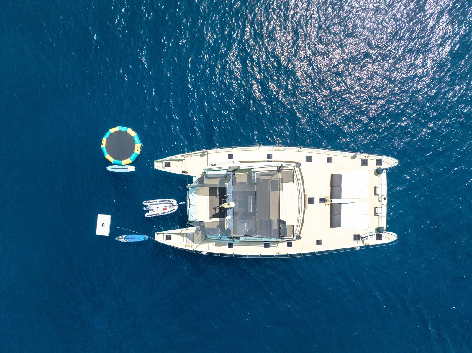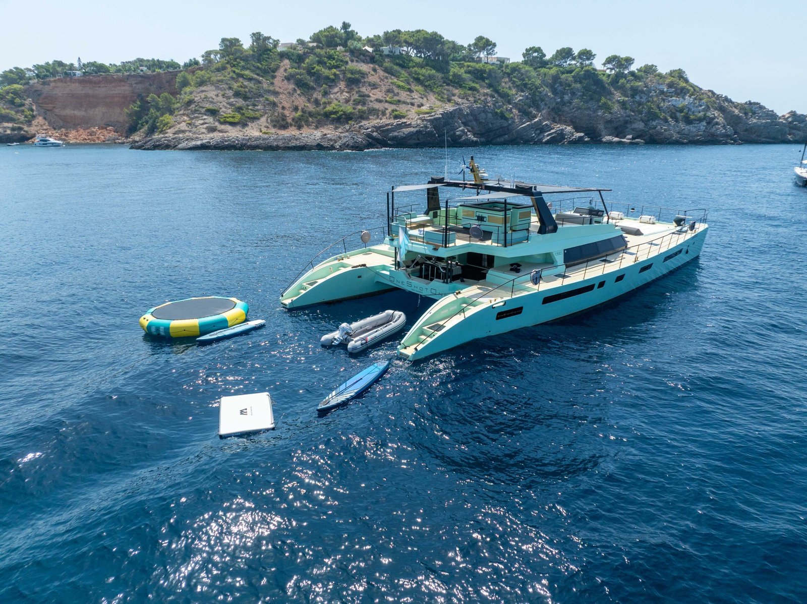 One Shot One is a 27.5-meter motor catamaran designed to offer an exclusive luxury experience in the heart of the Balearic Islands. With a generous beam of nearly 12 meters, it provides exceptionally spacious areas both inside and out, ideal for day or weekly charters.